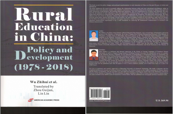 《Rural Education in China: Policy and Development (1978-2018)》是《中国农村教育:政策与发展 1978-2018》的英文译本,于2025年由美国学术出版社(American Academic Press)出版。该书由我校教育学部邬志辉教授领衔撰写,外国语学院周桂君教授主持翻译。