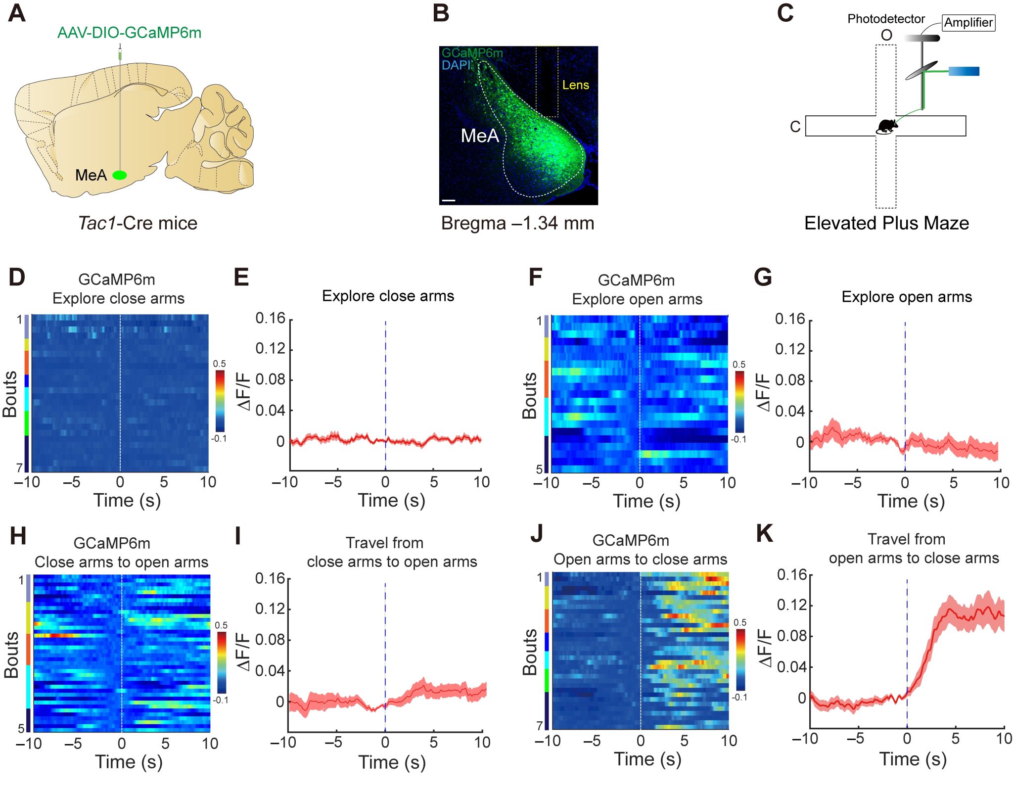 图1. Tac1神经元在小鼠焦虑样行为中的活动性变化