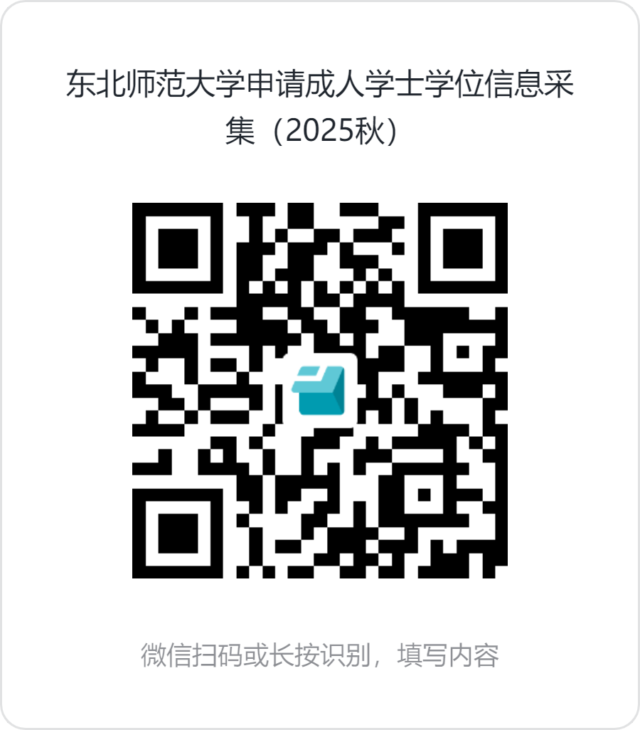 (1)手机填报:用手机微信扫描下方二维码,进入 “东北师范大学申请成人学士学位信息采集(2025 秋)” 页面,按要求填写信息、上传材料图片并提交。