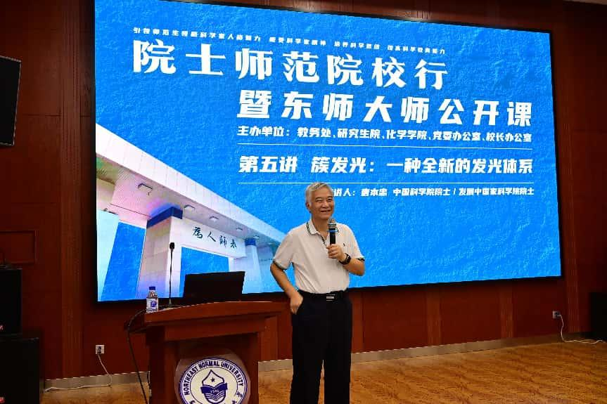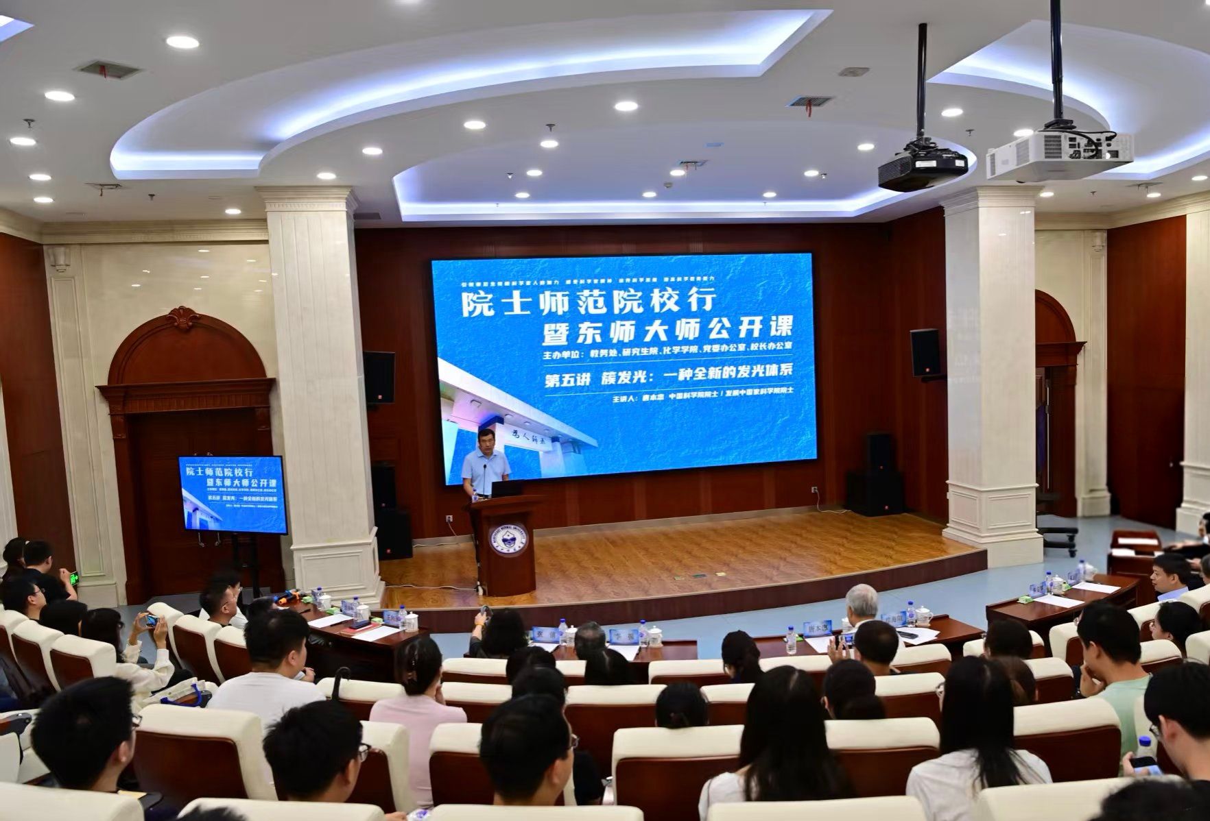8月6日,“院士师范院校行暨东师大师公开课(第五讲)”在东北师范大学人民大街校区图书馆报告厅举行。中国科学院院士、发展中国家科学院院士唐本忠教授,我校校长徐海阳教授出席。湖北大学副校长李振教授、华南理工大学秦安军教授、学校相关职能部门负责人、部分学院院长及师生代表近200人参加。活动由徐海阳主持。