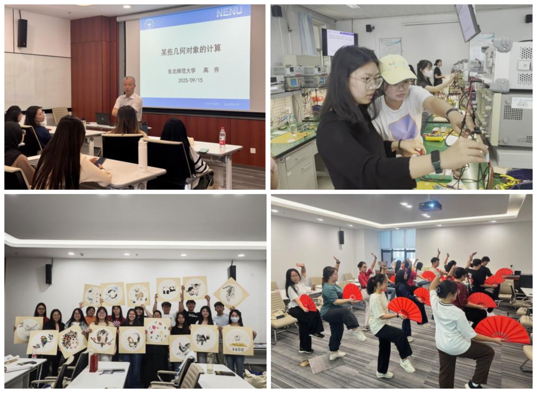 在理工科课程环节,全国教书育人楷模、数学与统计学院高夯教授作了专题讲座,以推导方式探索几何对象的计算方法,展示了数学的逻辑之美与思想深度。在物理学院,学生们在实验室中亲手完成电路焊接、声控电路设计等实践操作,并通过《忆阻器与类脑智能器件》专题讲座,了解了人工智能与新型芯片技术的前沿进展。在人文与文化课程环节,设置了《中国概况》《中国文化》《当代中国》等课程,引导学生从文学、历史、社会与语言等多重维度理解中国的文明脉络与现实图景。此外,书法、国画、茶道、太极扇、葫芦丝、掐丝珐琅、京剧等课程,使学生在亲身实践中感受到中华传统文化的深厚底蕴。在文化考察环节,学生们先后到长春市水文化生态园、长白山和延吉考察,学习城市发展与生态理念,领略自然景观与民族文化。