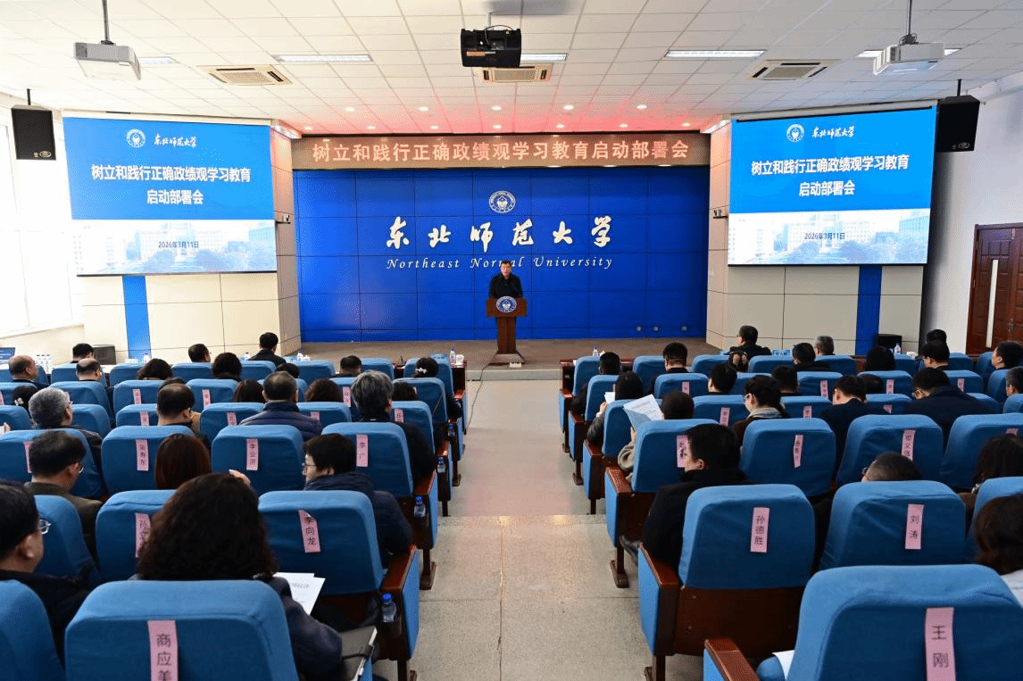 3月11日,东北师范大学召开树立和践行正确政绩观学习教育启动部署会,党委副书记、校长徐海阳出席会议并讲话。学校领导班子成员,各学院(部)党政主要负责人,机关、直附属单位主要负责人,机关各党支部书记参加会议。会议由党委副书记兼副校长常青主持。