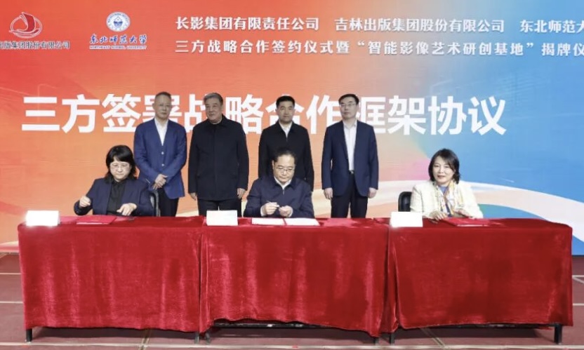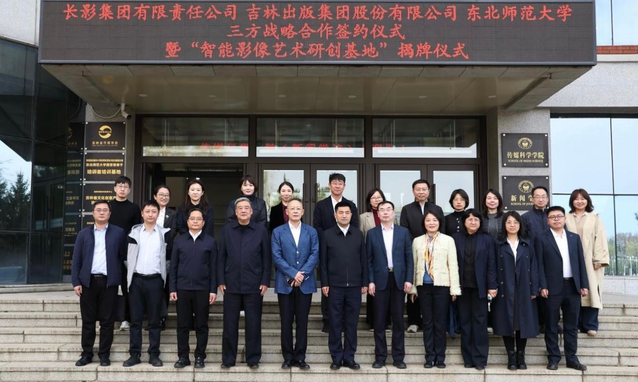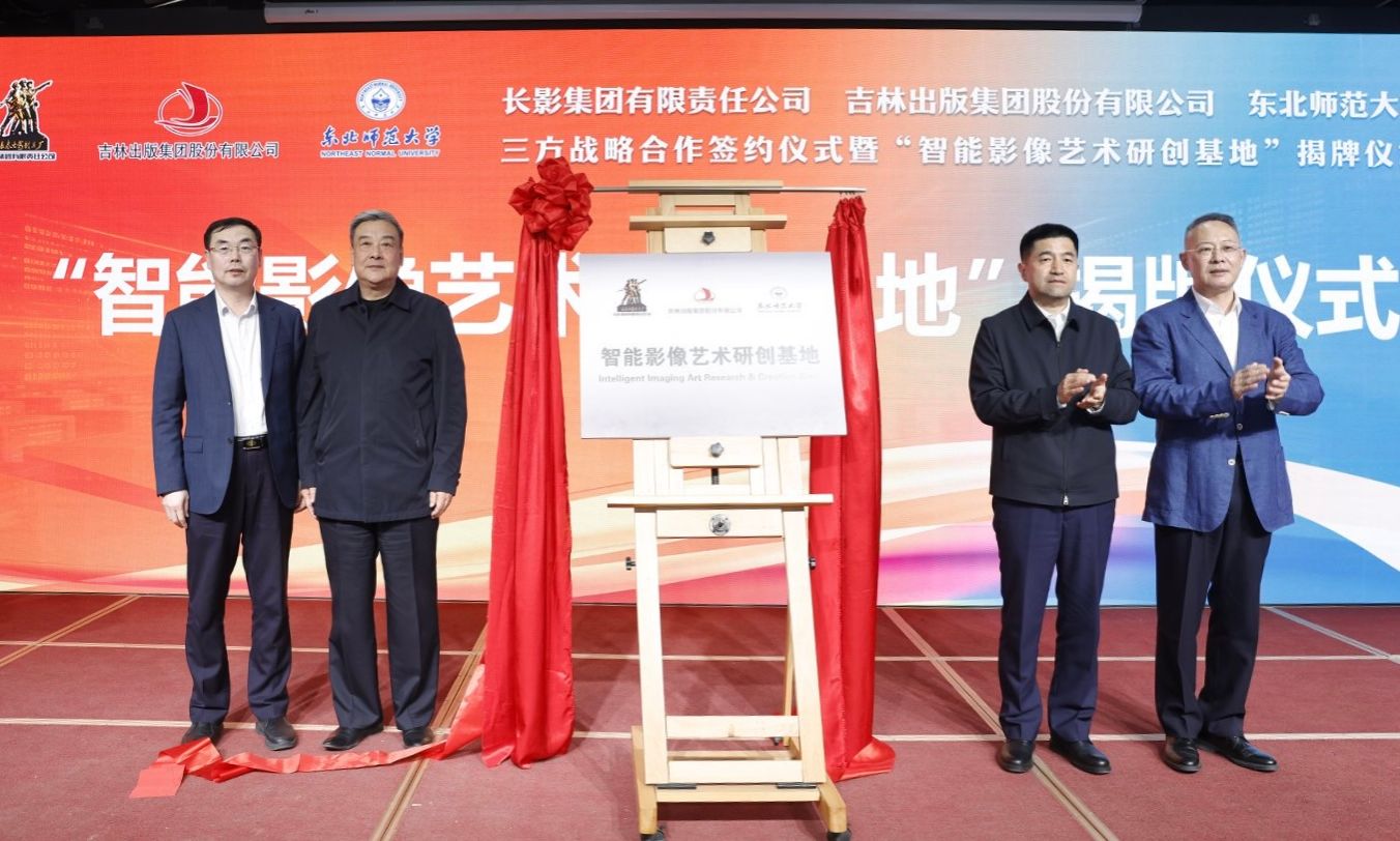 4月21日,我校与长影集团有限责任公司、吉林东北亚出版传媒集团有限公司三方战略合作签约仪式暨“智能影像艺术研创基地”揭牌仪式在传媒科学学院(新闻学院)举行。这是吉林省深入落实国家文化数字化战略、深化产教融合、培育文化产业新质生产力的标志性实践。三方协同构建“内容+影视+科技+教育”全链条融合体系,共拓文化强省新空间。