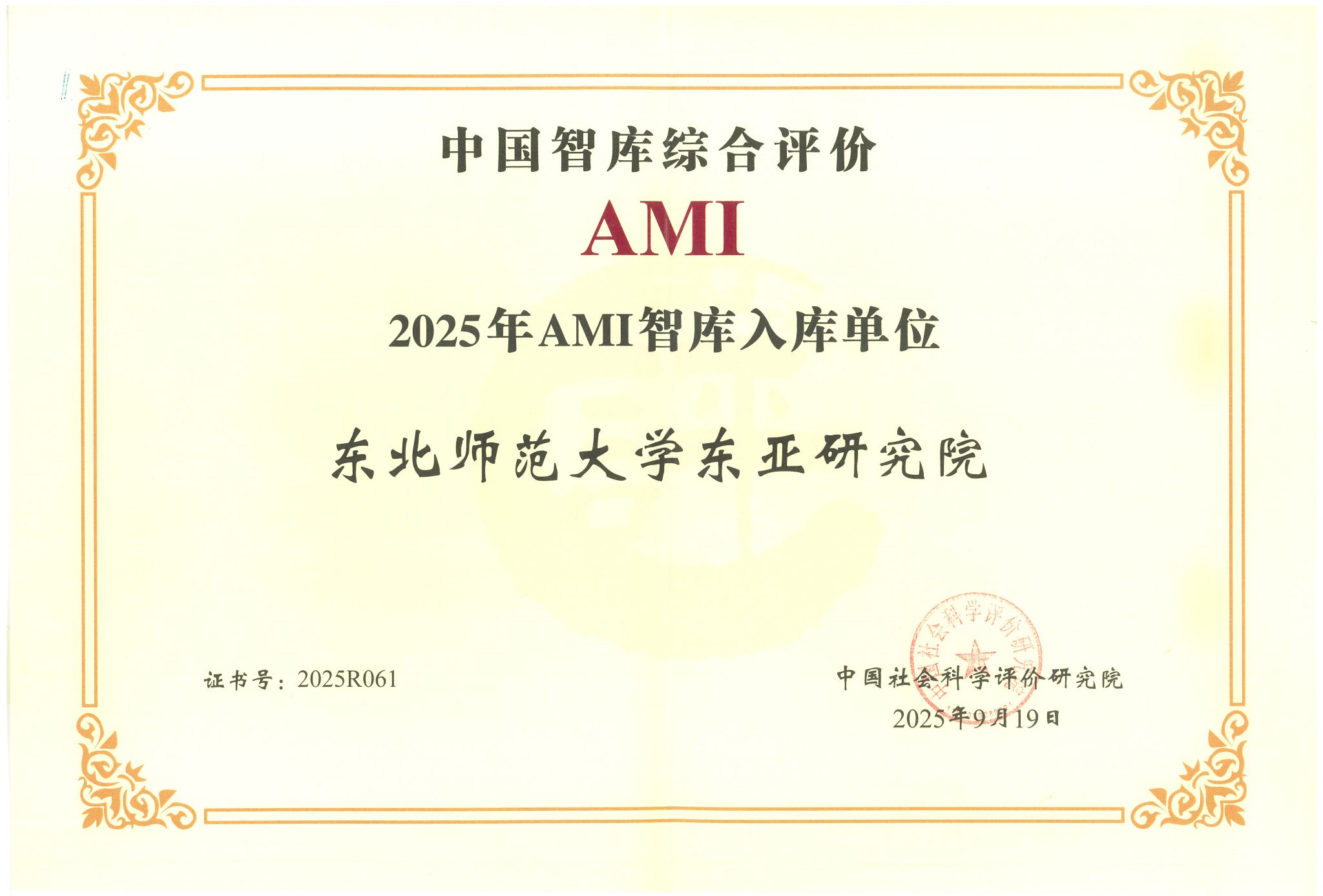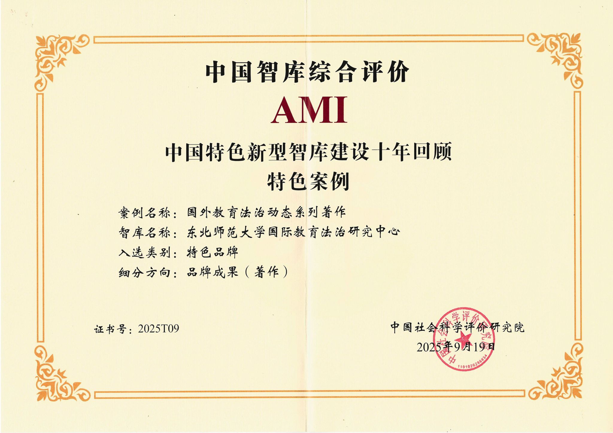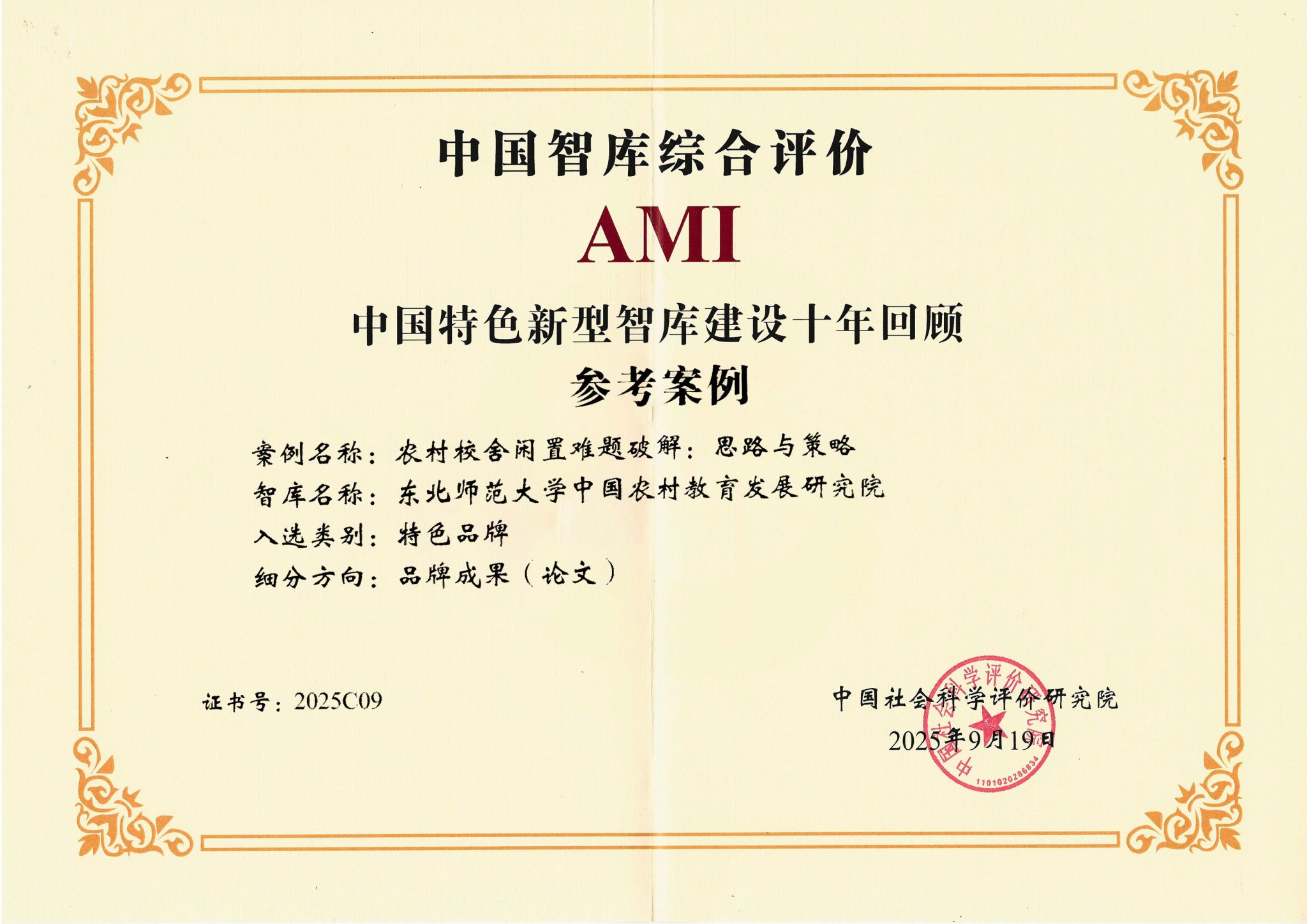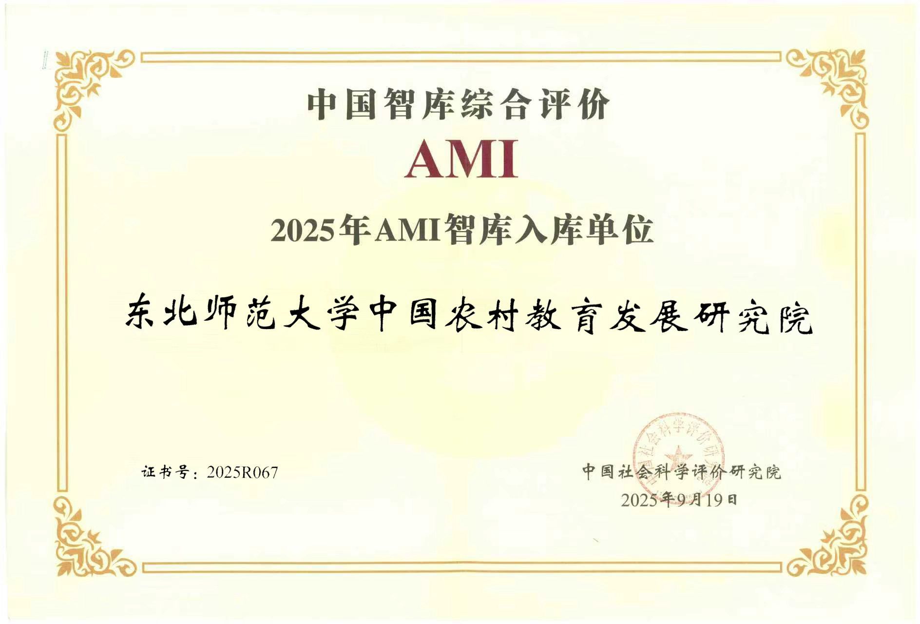 近日,第八届中国智库建设与评价高峰论坛在北京召开,会上正式公布了《中国智库综合评价研究项目(2025)AMI智库入库名单》《中国智库综合评价研究项目(2025)中国智库特色案例名单和中国智库参考案例名单》。该项目由中国社会科学评价研究院组织实施,我校申报的中国农村教育发展研究院、东亚研究院、思想政治教育研究中心、教师教育研究院、国际教育法治研究中心、中国东北研究院、运动流行病学研究中心等7家智库全部入选2025年AMI智库。