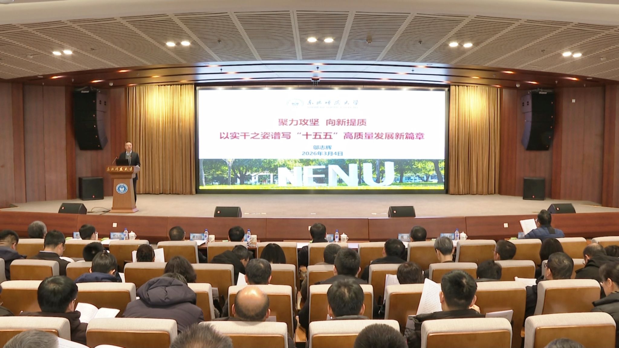 2026年是“十五五”开局之年,是学校迎接建校80周年的喜庆之年,也是学校全面落实第十六次党代会精神,夯实基础、全面发力,加快推进中国特色世界一流师范大学建设的关键之年。3月4日至5日,学校召开“十五五”规划专题研讨会,全面总结“十四五”建设发展成就,共同擘画“十五五”时期高质量发展新蓝图,吹响了新春激扬奋进的强劲号角。大会在人民大街校区惟真楼报告厅举行。校长徐海阳主持会议并讲话。